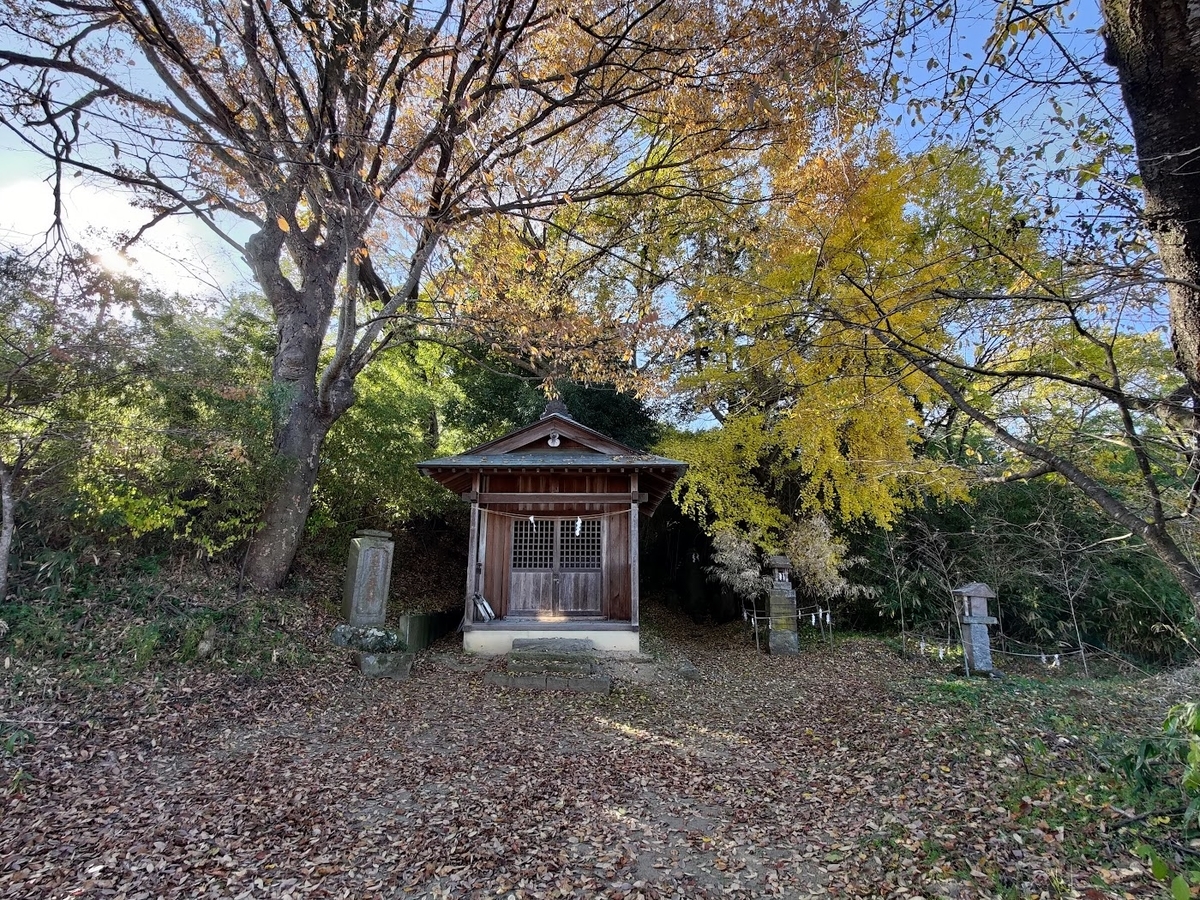 そんな歴史を知った今、どうしても彼の地をこの目で見たくなり、先日紅葉狩りを兼ね、遠路遥々訪ねてみた。町外れ、一住宅の脇にある小さな参道の先には、もうすっかり色褪せてしまった木製の明神系両部鳥居が見える。今は参拝する人も疎らであろう境内は、欅の落ち葉で埋め尽くされていた。