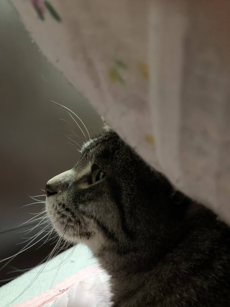 天気の良い日、彼は窓辺に寝そべり、陽に当たりながら外の景色を眺めている。時に空をゆく鳥に興味を示し、手を伸ばしながら可愛らしい声で鳴く。きっと本能で狩りをしているのだろう。それとも友達になりたいのかな。「僕も空を飛べたらなあ…」と思っているのかもしれない。僕は男だが、彼のことが大好きだ。会う度に必ず、二度三度と抱きしめてしまう。